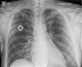 The circular thingy visible in my X-ray above is called a Portacath1, a type of implanted venous access device.